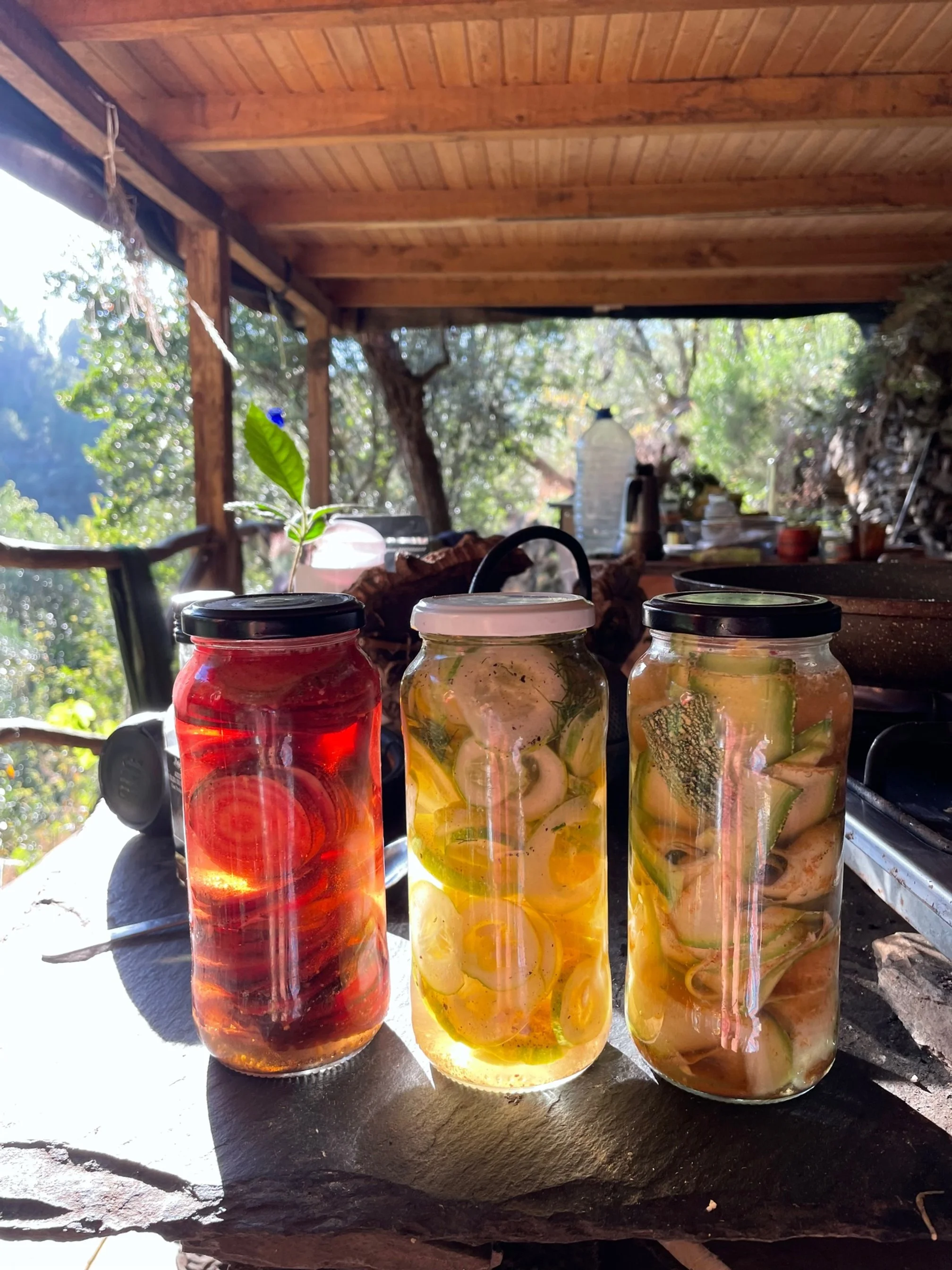 I take my permaculture thinking to the kitchen and design colourful and diverse food using local and seasonal produce. Furthermore I’m making all different varieties of pickles, jams , chutneys, ferments, cordials, dried spices & teas- preserving the abundance. I work as a vegetarian and vegan chef for retreats and event caterings.